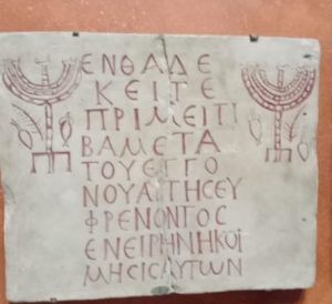 Copies of catacomb inscriptions in Jewish museum in Rome