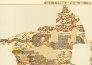 Section of the Madaba map, “alternate” Gerizim and Eival are highlighted