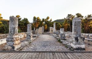 The synagogue was first built after the Bar Kokhba revolt, in the mid second century. It was small (eleven by nine meters), with a north and a south entrance. It faced Jerusalem and had an elaborate façade as do other synagogues in this region. Around one hundred years after it was built, it was expanded, a fancy lintel with a picture of a menorah was added. We also find other carvings, like a sheep, lions and a rabbit. This lintel may have been part of an elaborate Torah ark: