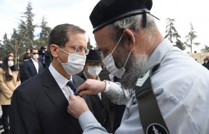 President Herzog tearing kriah at his mother’s funeral