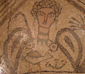 The “season ladies” that appear at the corner of the zodiac panels in a few different synagogues, including Zippori, Bet Alfa and Hamat Tverya are also helpful. While the Zippori seasons are mostly unadorned: