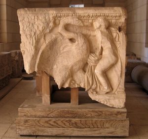 While it is exciting to uncover the town, the necropolis is the more unusual and exciting find. In over twenty burial caves, one with more than one hundred and thirty sarcophagi, are inscriptions in Hebrew, Greek and Aramaic, attesting to people brought for burial from places as far ranging as Alexandria, Antioch, Palmyra and Yemen. The professions listed in the inscriptions range from leaders of towns to money changers, doctors, merchants and sailors. The sarcophagi display everything from the simplest lettering and geometrical decorations to mythological figures like Leda and the swan, showing that not all the Jews buried here held the same views about imagery and pagan figures.