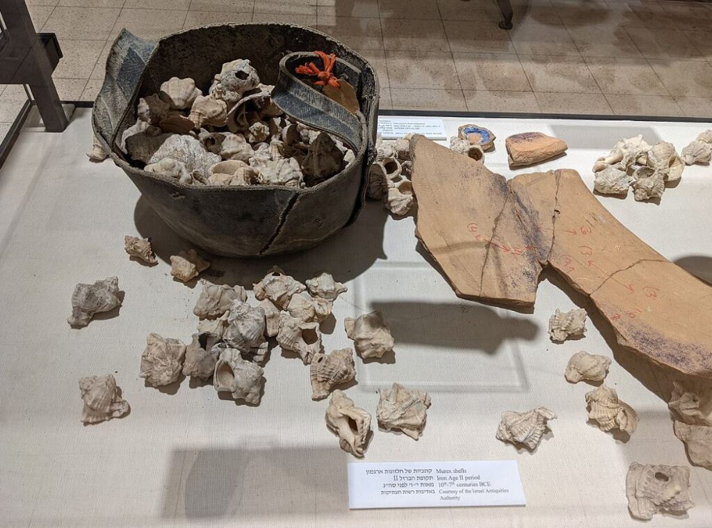 Murex snail shells from Biblical times, with traces of purple dye on the pottery