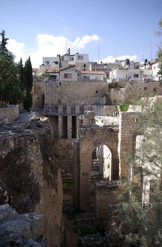 Scholars are unsure where this is but one suggestion is that it is at the northeast corner of today’s Old City, near the Lion’s Gate. In Second Temple times there were pools here called the Sheep Pools (see here) and Dan Bahat suggests that they are built on the remains of the earlier pool.
