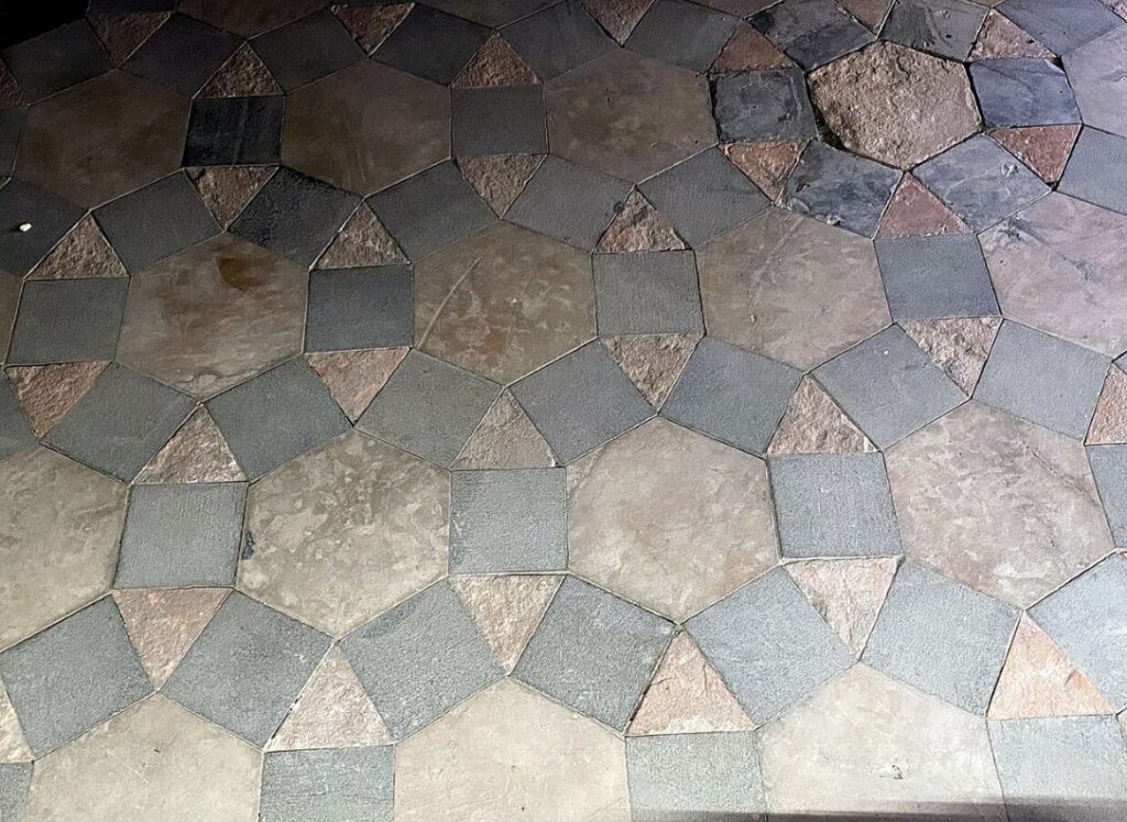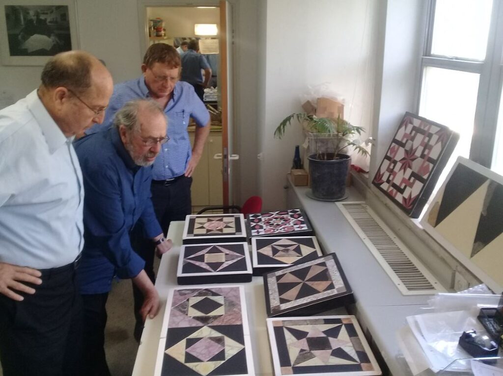 One of the items that turned up frequently were colored stones shaped into triangles, squares and other shapes. Unlike mosaic stones, which are usually square and of a relatively uniform size and shape, these pieces were varied. About one hundred of them can be dated to the Herodian (late Second Temple) period. One of the supervisors at the dig, Frankie Snyder, noticed these pieces and using her math background and her knowledge of Herodian period sites, she began to reconstruct what the floors looked like.