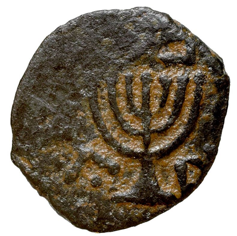 Menorah on a coin from the last Hasmonean king Mattityahu Antigonus