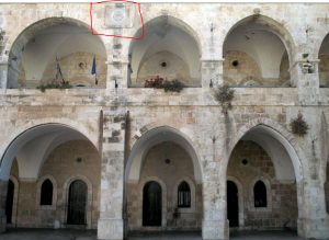 The situation was reaching crisis proportions as more and more Jews came to Jerusalem. It was not uncommon for families to share a single room apartment. The first attempt to solve the problem was to build better housing inside the walls. A member of the wealthy Jewish Rothschild family, along with the communities of Hungary, Holland and Germany, bankrolled the Batei Mahseh compound on the edge of the Jewish Quarter, The Rothschild family crest of a red shield (rot=red) with five arrows on it is prominently displayed on the main building in the square.